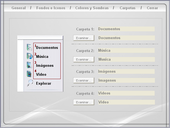 Su diseño es parecido al menú Inicio de Windows, pudiendo cambiar la imagen que aparezca así como el color del menú y el diseño de los iconos.
